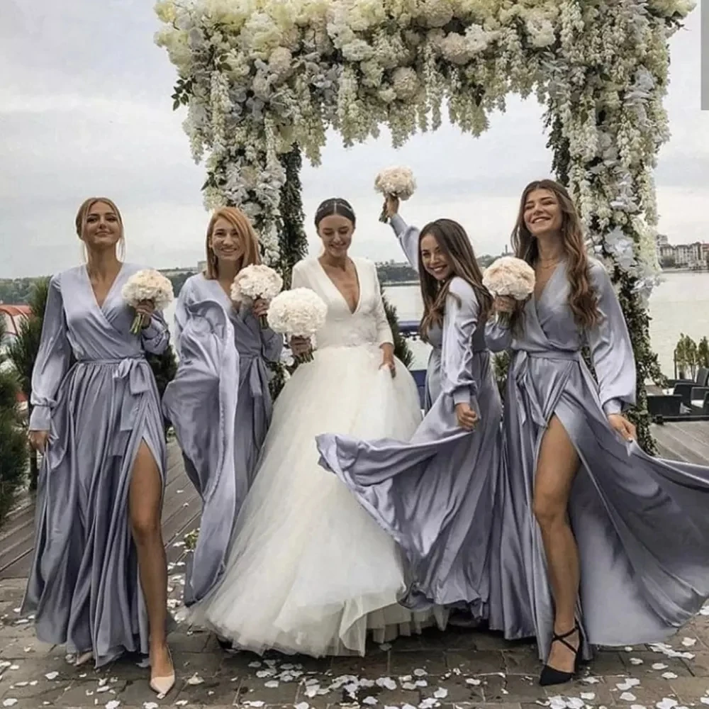 Ladies Lavender A Line Bridesmaid Dresses With Long Sleeves 2021 Sexy Side Slit V Neck Fashion Wedding Party Dress Formal Gown Bridesmaid Dresses Aliexpress